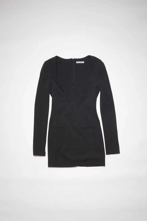 Acne Studios black blouse tunic dress is crafted from a wool blend, detailed with a welt pocket. Cut to a fitted silhouette, with a square-cut neckline, long sleeves and mid-thigh length.