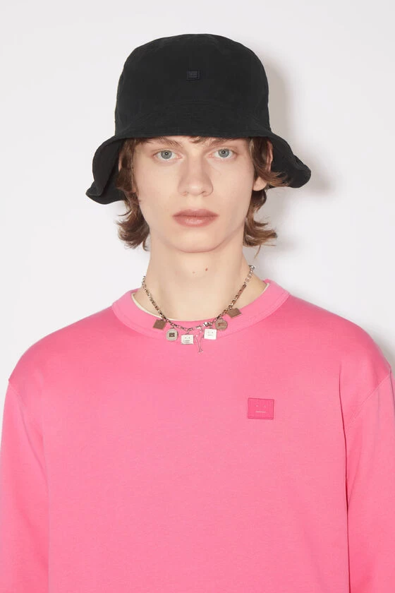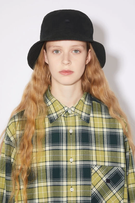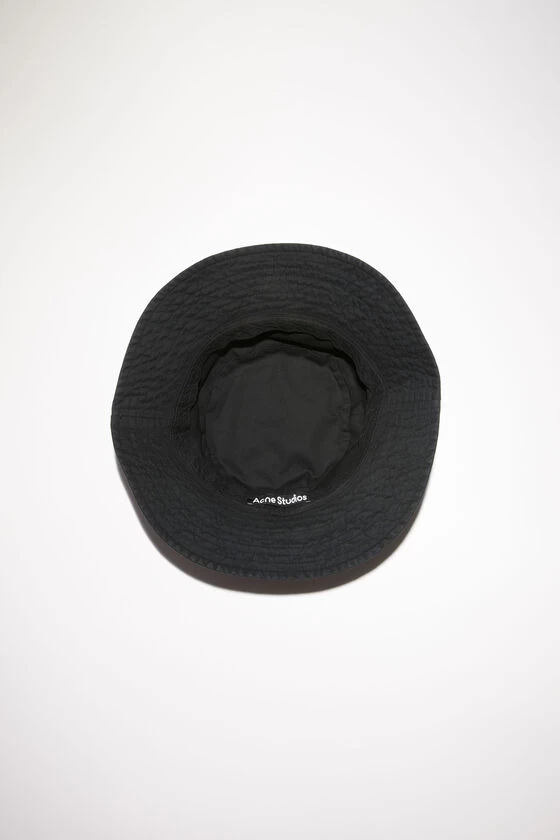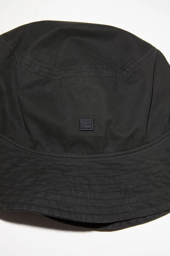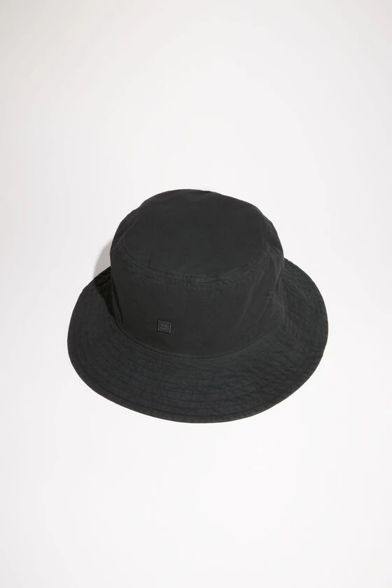 Acne Studios black bucket hat features a micro face patch and is made of cotton with a faded finish.