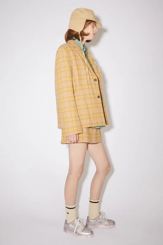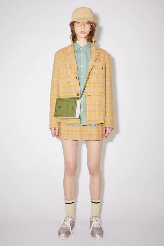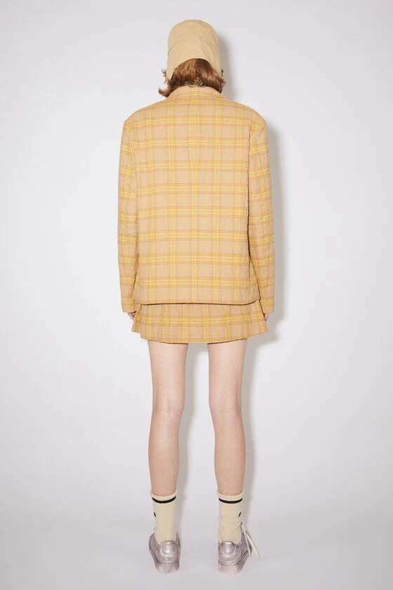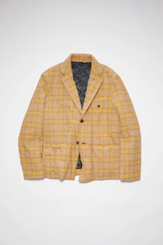 Acne Studios brown/orange jacket features an all-over check print, detailed with a micro face logo embroidery on the chest pocket. Complete with side patch pockets and cut to a regular silhouette.