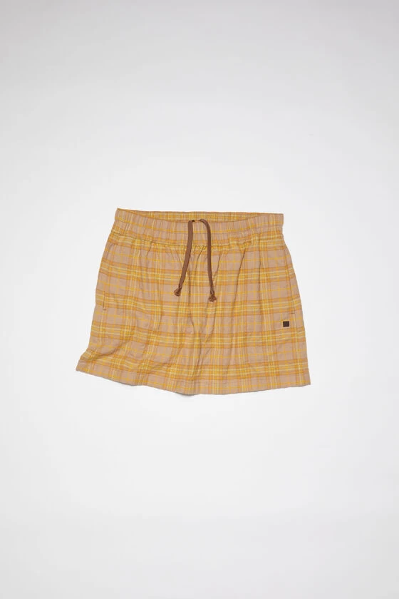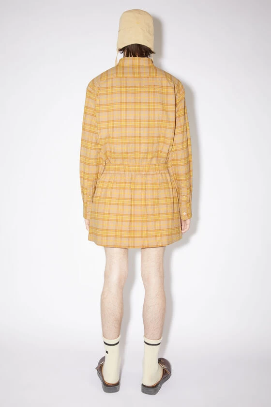 Acne Studios brown/orange jacket features an all-over check print, detailed with a micro face logo patch on the front and a face logo embroidery on the back. Complete with an elasticated waist, side seam pockets and a back patch pocket. Cut to a regular fit with a mid-length.