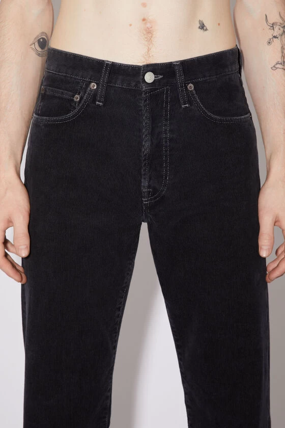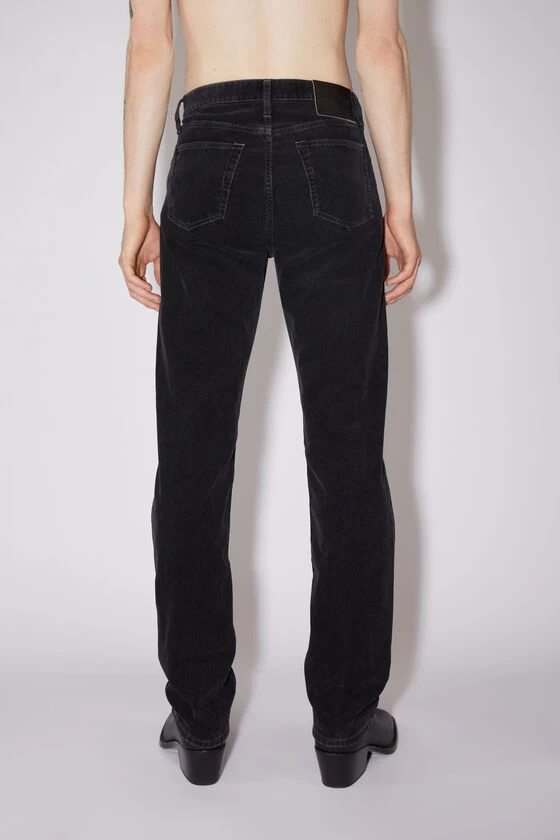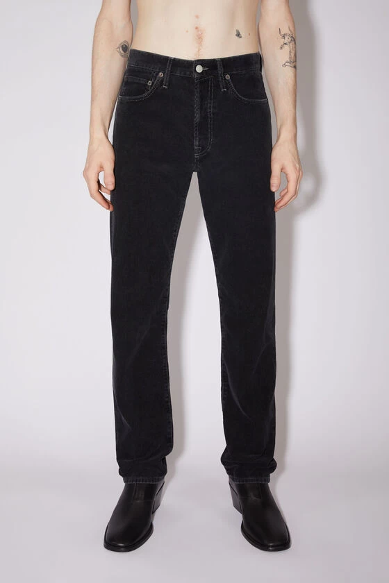 Acne Studios black regular fit jeans feature a 5-pocket denim construction with a mid waist, straight leg and regular length. The 1996 jeans are crafted from corduroy made of cotton blend.