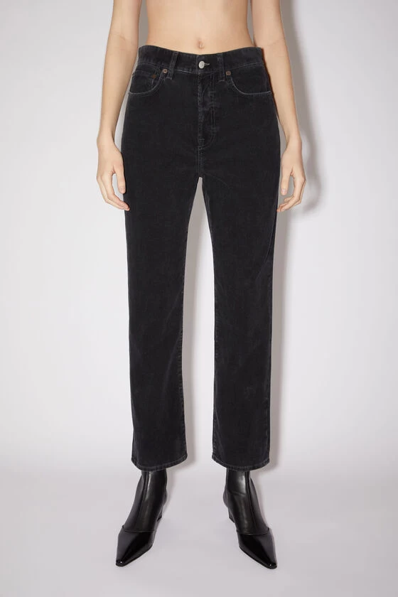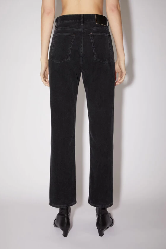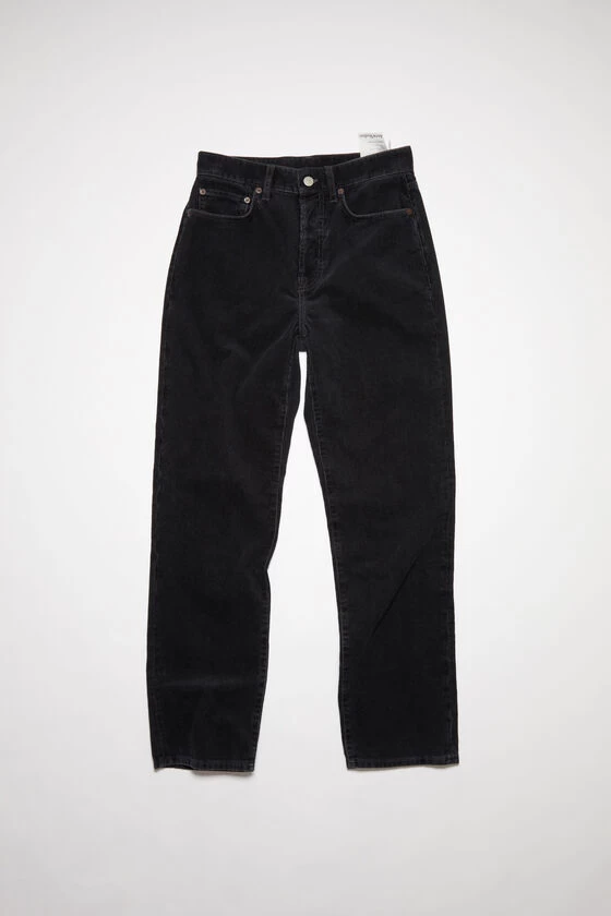 Acne Studios black regular fit jeans feature a 5-pocket denim construction with a high waist, straight leg and cropped length. The Mece jeans are crafted from corduroy made of cotton blend.