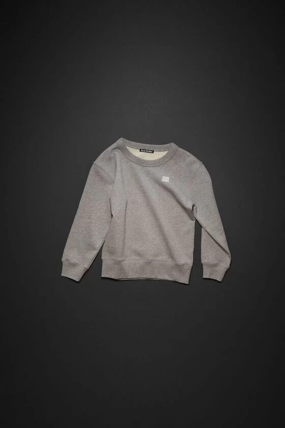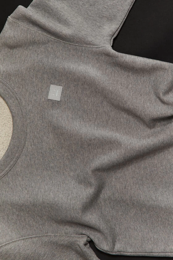 Acne Studios light grey melange crew neck sweatshirt features a face logo patch on the chest and is detailed with a bound neckline, ribbed cuffs and hem. Crafted from mid-weight cotton and cut to a regular fit.