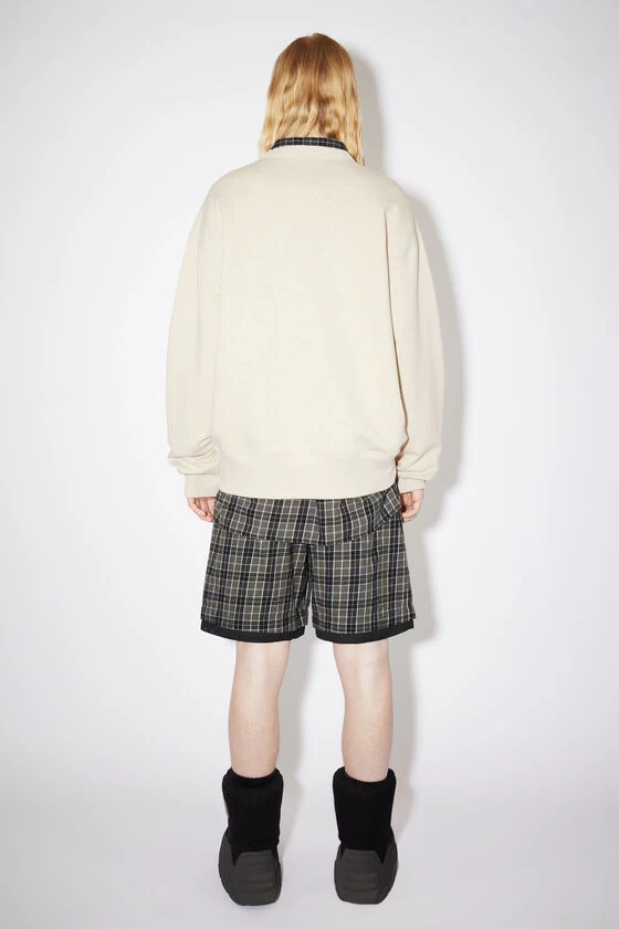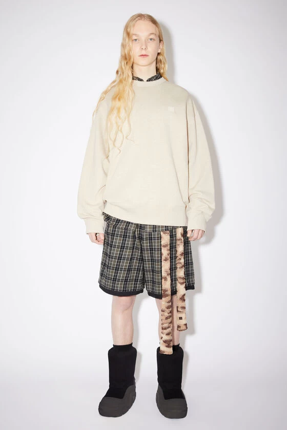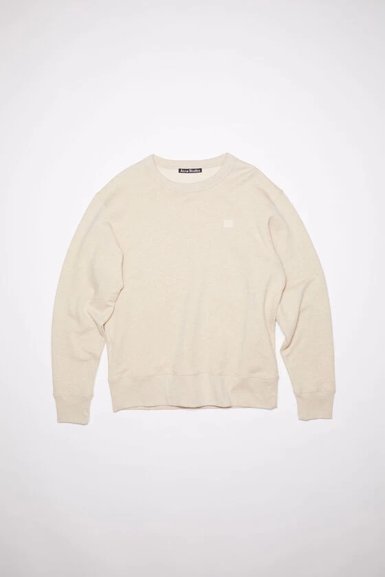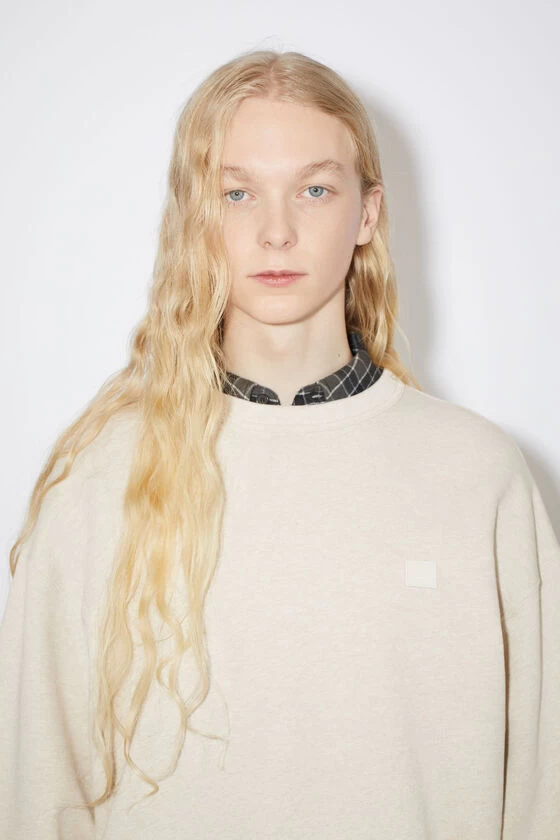 Acne Studios oatmeal melange crew neck sweatshirt is made of cotton with a face patch at the chest and regular fit that is true to size.