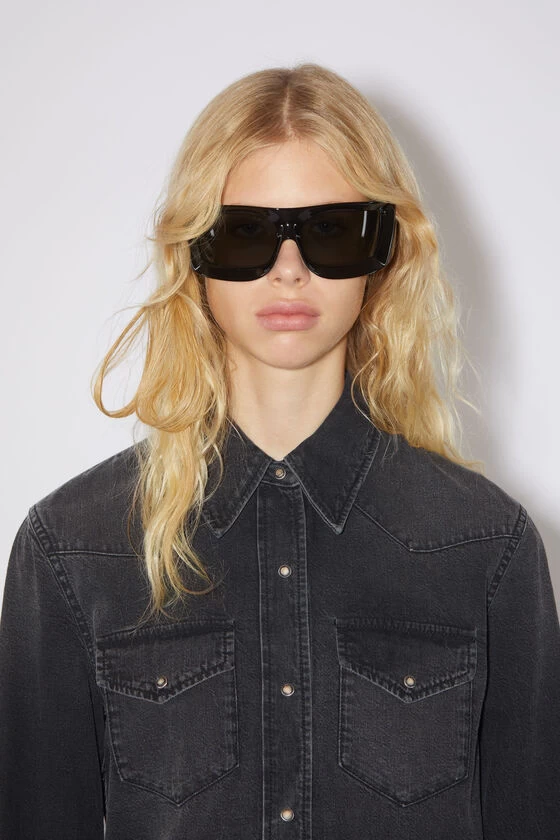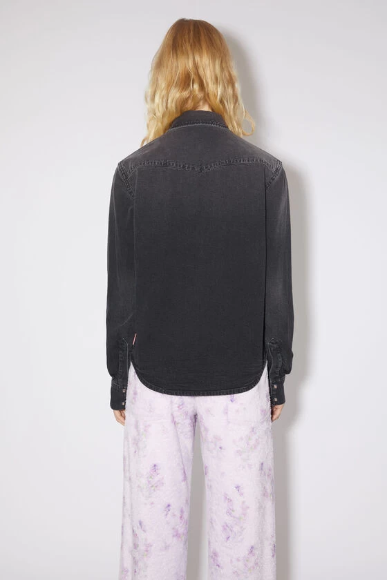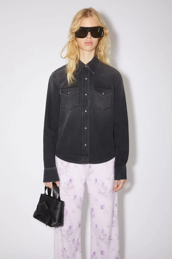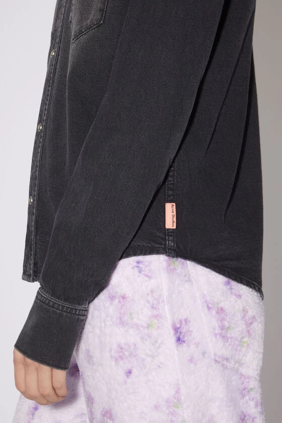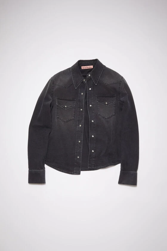 Acne Studios black denim shirt is cut to a fitted silhouette, crafted from cotton. Detailed with a front snap button-up closure, and chest pockets.