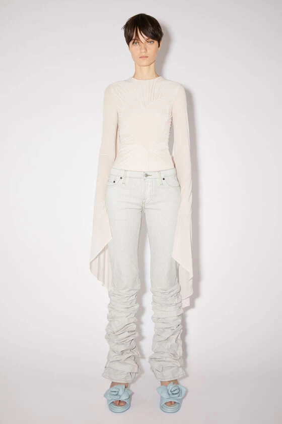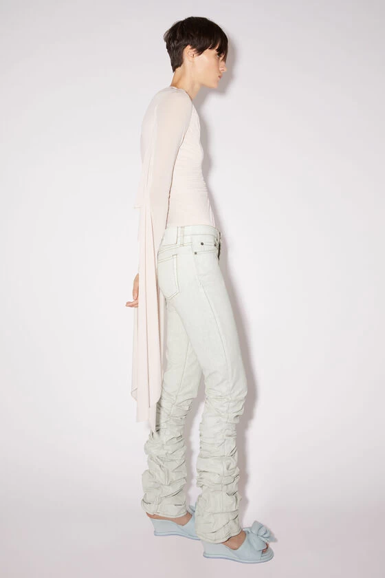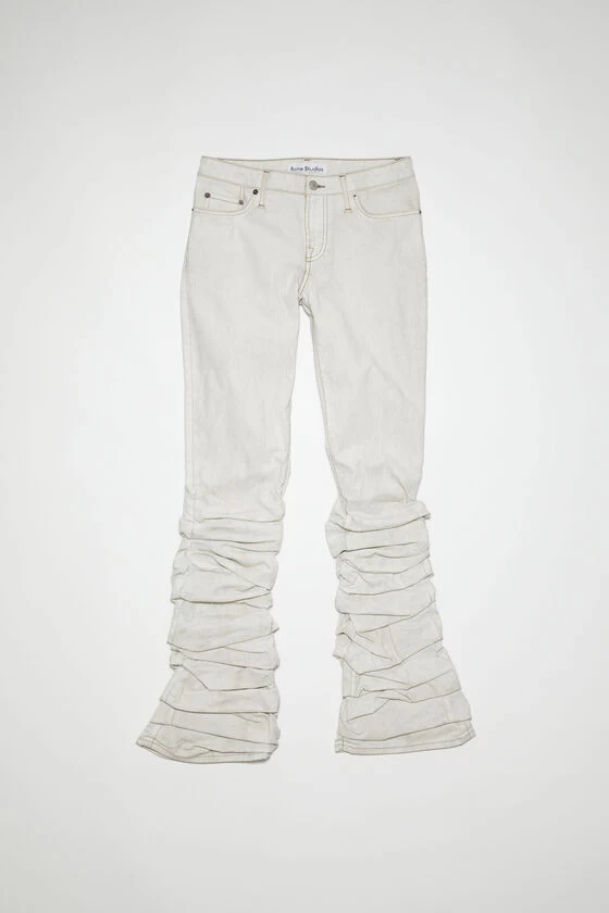 Acne Studios white/brown trousers feature 5-pocket denim construction crafted from cotton with a waxed finish. Detailed with gathered leg and cut to a slim fit with a low right and ultra-long length.
