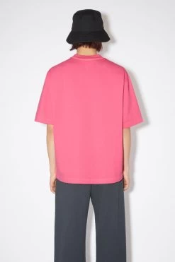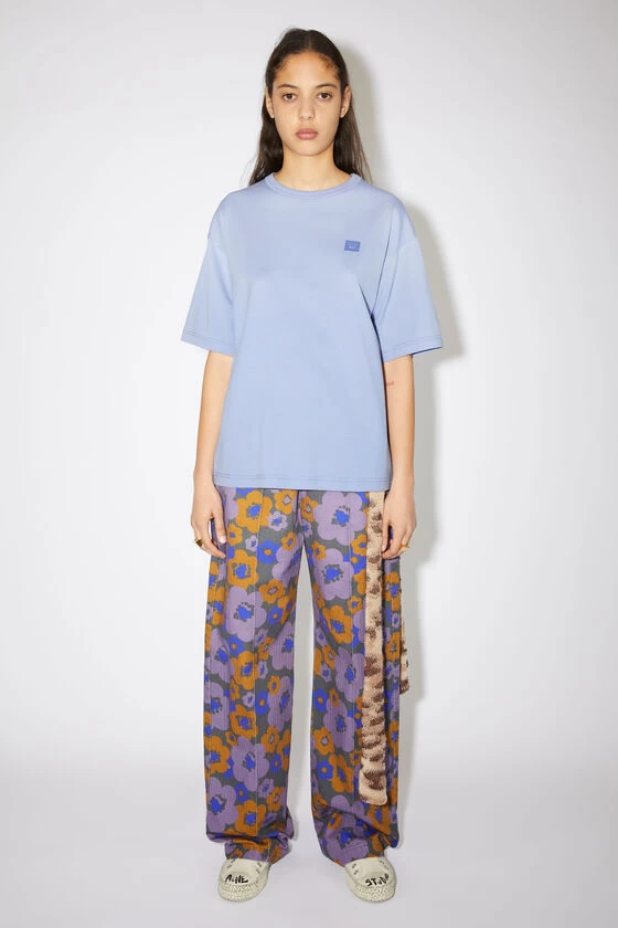Acne Studios pale purple crew neck t-shirt features a face logo patch on the front and is detailed with a bound neckline. Crafted from lightweight jersey made of cotton and cut to a relaxed unisex fit.