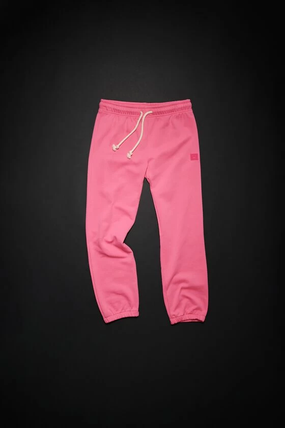 Acne Studios bright pink sweatpants are crafted from midweight cotton, detailed with a face logo patch and complete with two side pockets and one back pocket. Cut to a regular fit with an elasticated waistband and regular length.