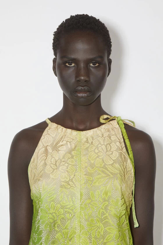 Acne Studios lime green top features a floral lace, detailed with a colour wash finish. Complete with drawstring closure at the neckline and cut to a relaxed fit.