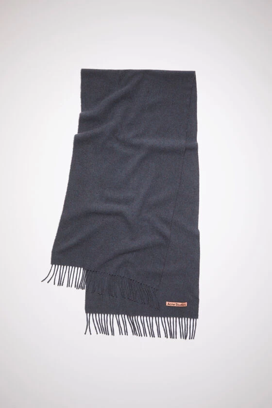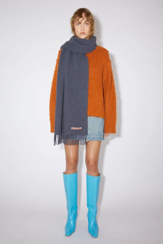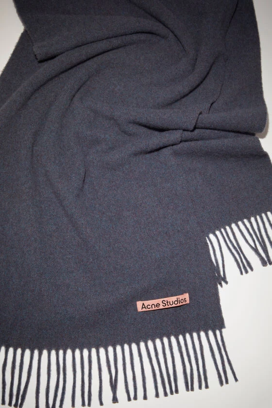Acne Studios purple melange fringed scarf is detailed with a pink Acne Studios label and crafted from midweight wool.