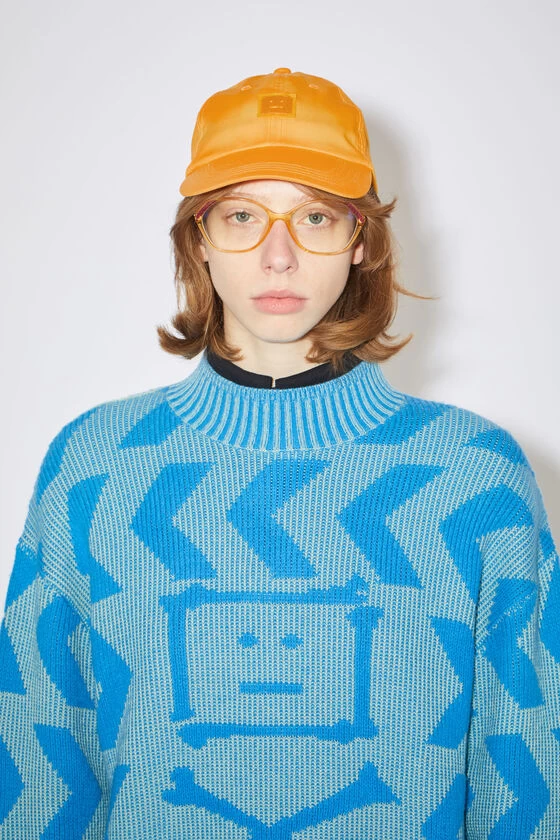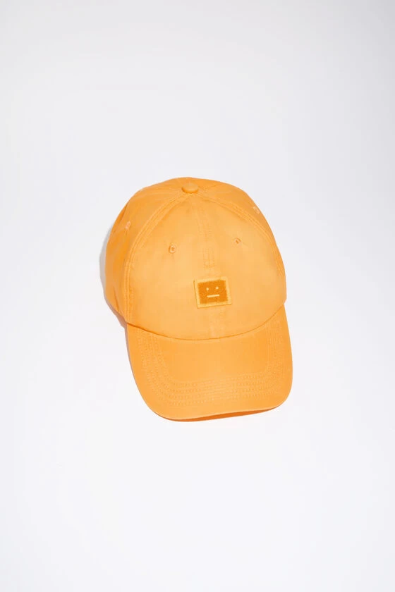 Acne Studios orange/yellow six-panel baseball cap is crafted from heat reactive fabric and detailed with a Face logo patch. Complete with an adjustable velcro closure at the back.