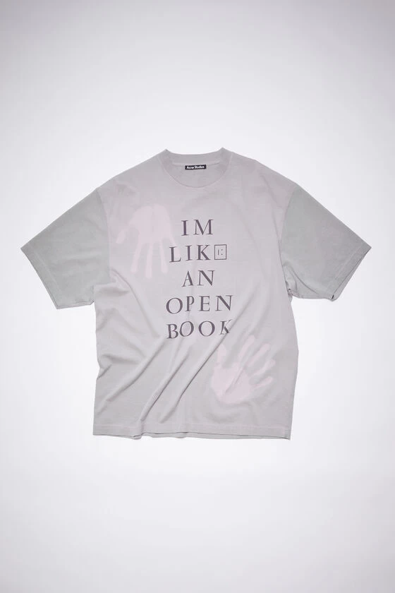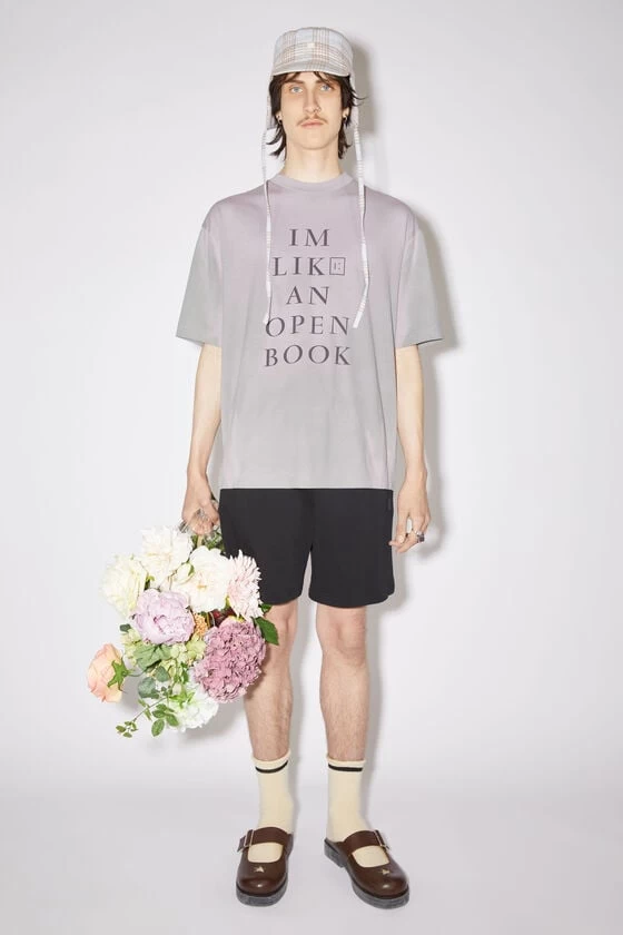 Acne Studios grey/purple t-shirt is crafted from heat reactive fabric, adorned with a print on the front and a small print on the back. Cut to a relaxed fit and made of lightweight cotton jersey.