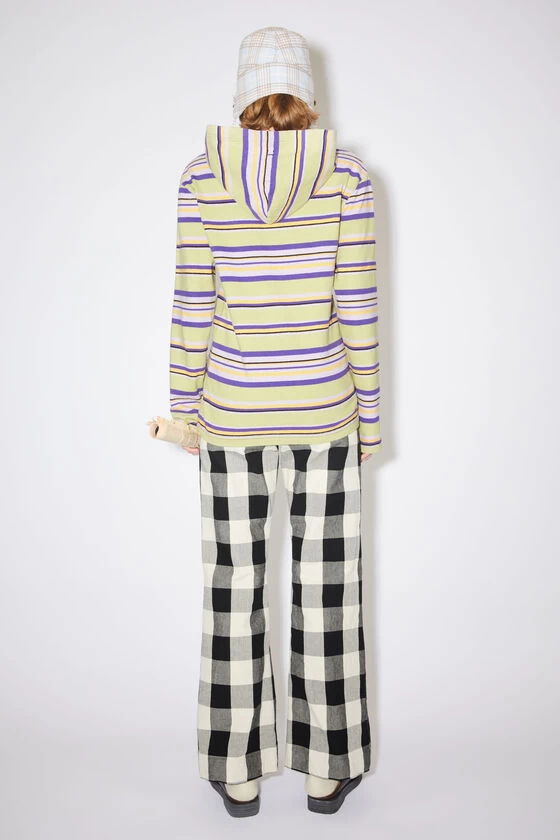 Acne Studios pale green multi long sleeve hooded shirt features a stripe pattern made of cotton. Detailed with a face logo patch on the chest and a face print on the hood. Cut to a regular fit, elongated sleeves and regular length.
