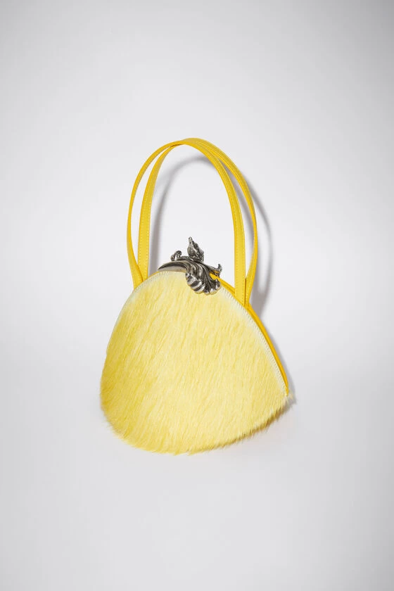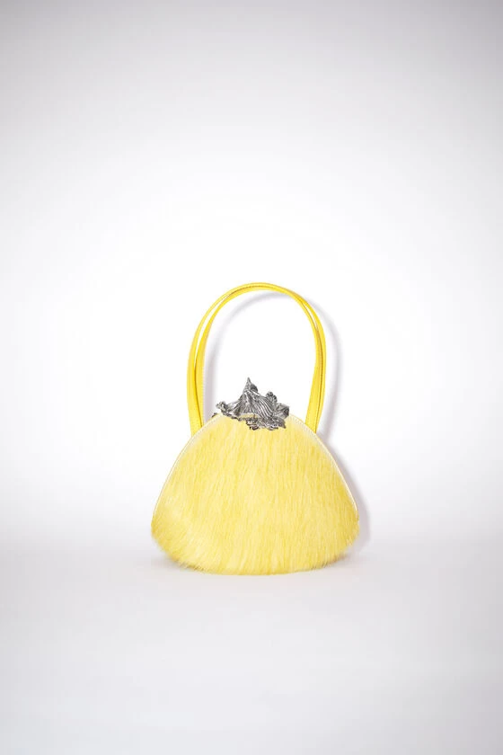 Acne Studios yellow handbag features a sculptural shell shape, crafted from leather and is embellished with a silver-toned jewel closure. Detailed with a strap and a debossed Acne Studios logo.