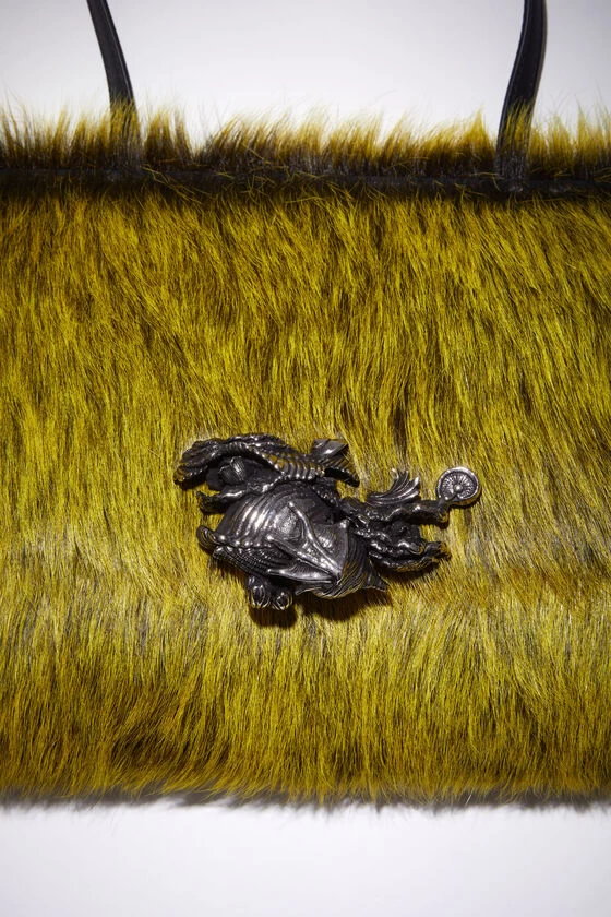 Acne Studios black/yellow shoulder bag is crafted from hairy leather with a bicolour finish and is embellished with a silver-toned jewel closure. Detailed with a shoulder strap.