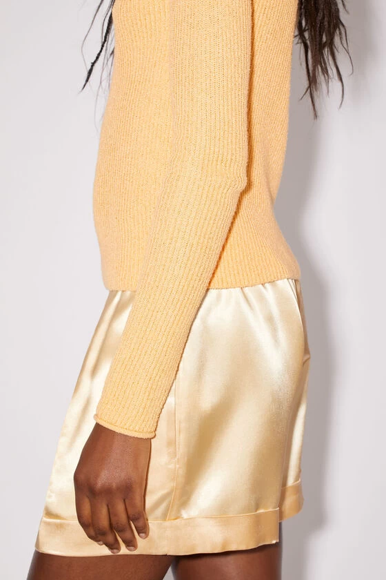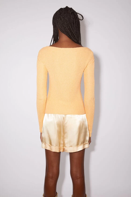 Acne Studios vanilla yellow jumper features a cotton blend and tonal-coloured yarn with a ribbed finish. Detailed a v-neckline and cut to a regular fit.
