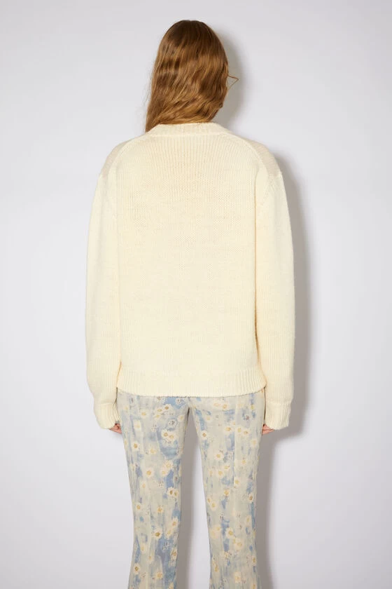 Acne Studios white/blue jumper features a reversed knitted artwork by artist Karen Kilimnik crafted from intarsia wool and detailed with loose yarn. Cut to a relaxed fit and a hip length.