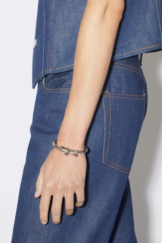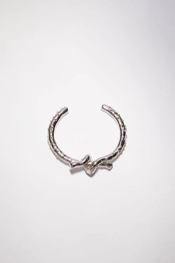 Acne Studios silver cuff bracelet features a knot detailing with a silver-toned finish and detailed with an engraved Acne Studios logo.