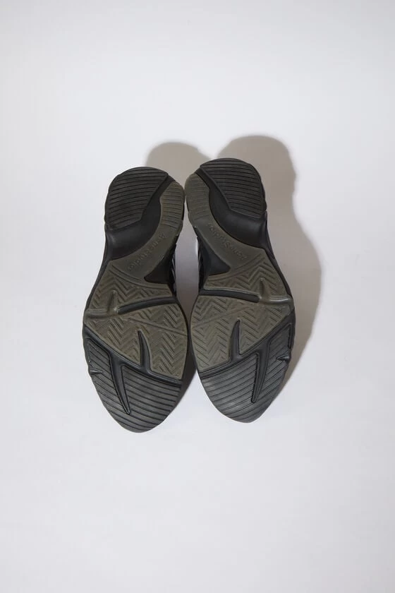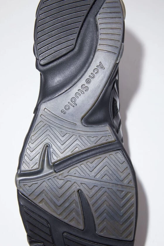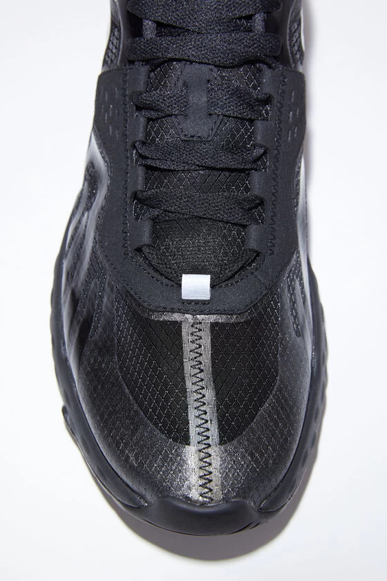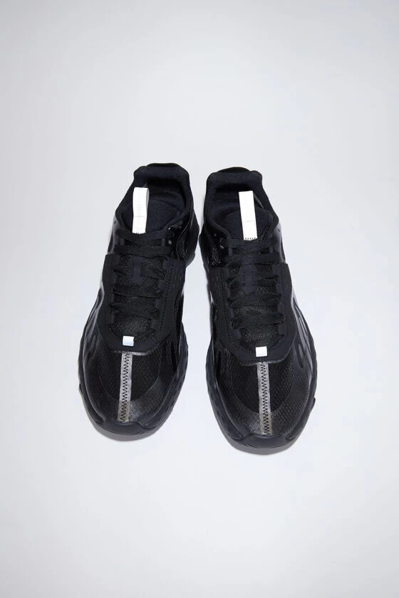 Acne Studios black/black/black lightweight lace-up sneakers are lined in mesh.