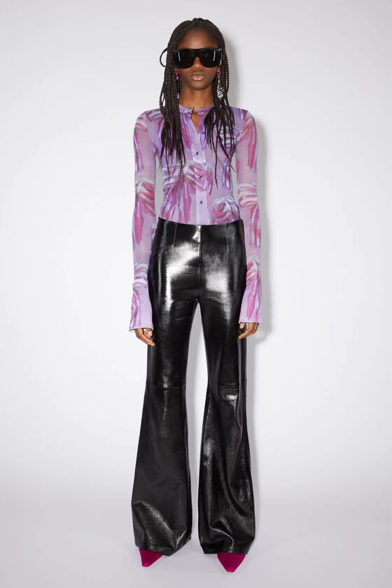 Acne Studios trousers are crafted from leather with a glossy finish. Cut to a regular fit with a mid-rise, flared leg and long length.