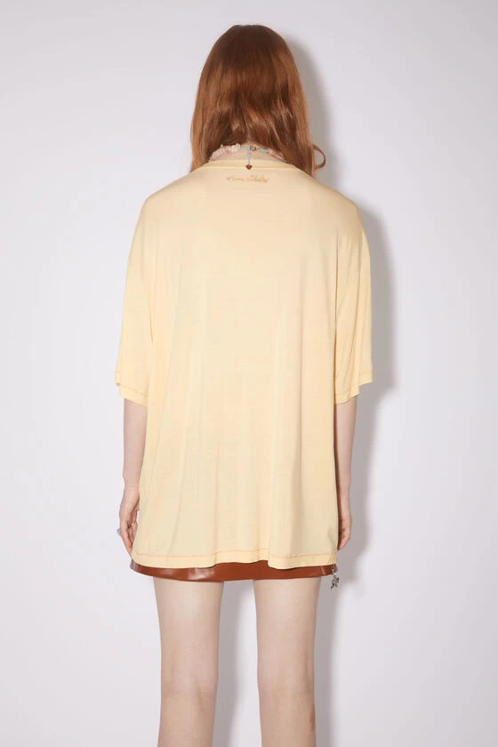 Acne Studios vanilla yellow t-shirt is crafted from a fluid lightweight jersey with a faded appearance and adorned a cut-out artwork on the front. Cut to a relaxed fit and below hip length.