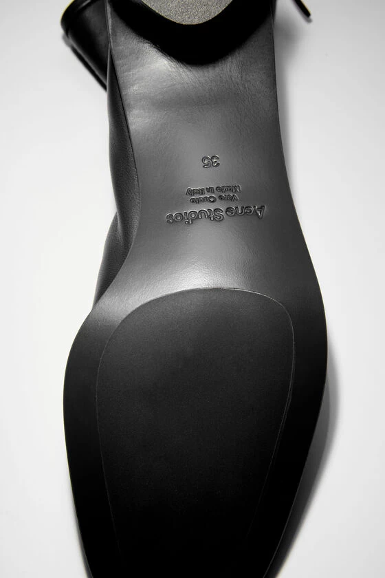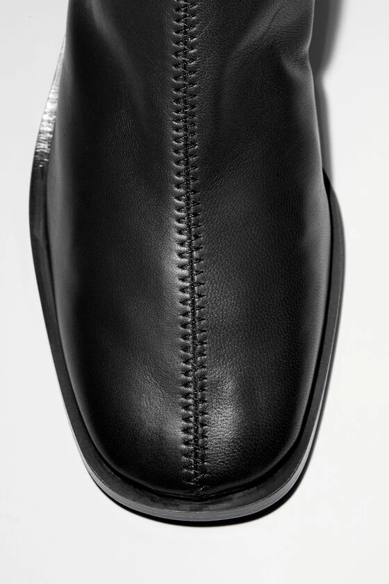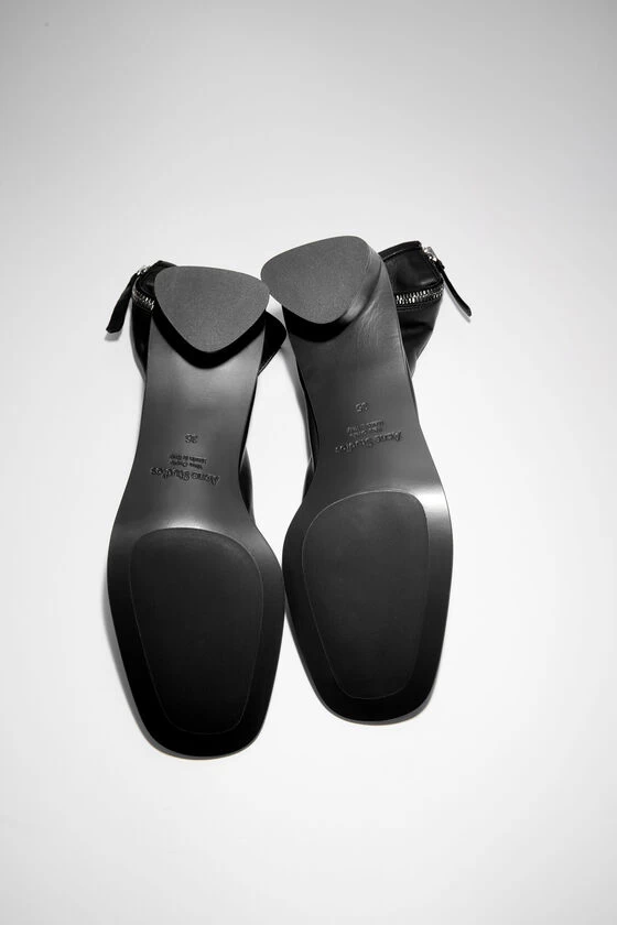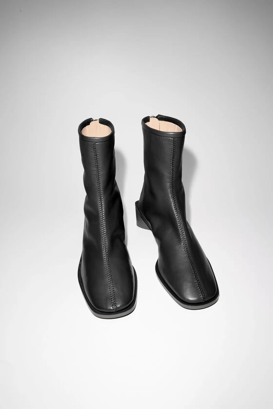 Acne Studios black/black ankle boots are crafted from leather, detailed with an Acne Studios logo and block heel. Complete with a zipper closure at the back and a square-shaped toe.