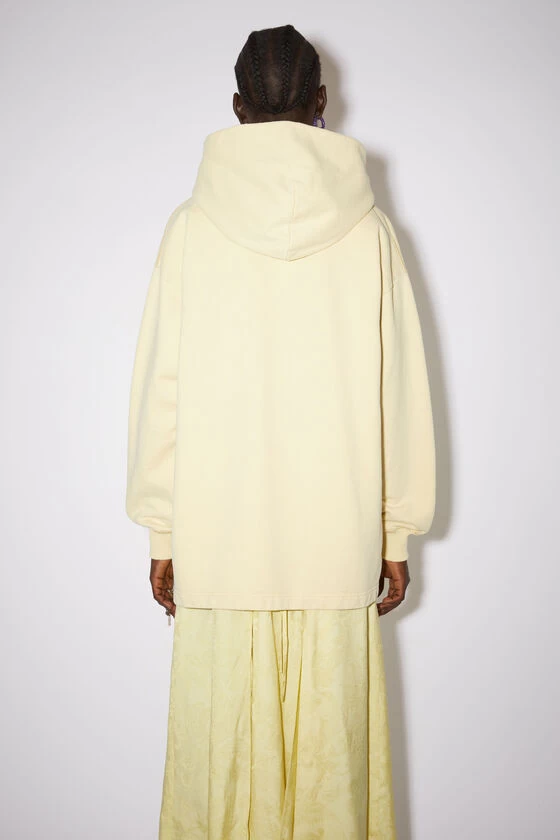 Acne Studios vanilla yellow hooded sweatshirt features a logo print on the front and is cut to an oversized fit. Completed with ribbed details on the cuffs and hem. Crafted cotton with a pigment-dyed appearance.