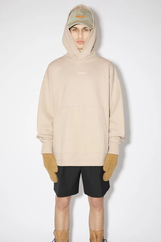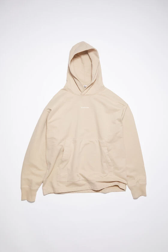 Acne Studios champagne beige hooded sweater features a centre front Acne Studios stamp logo, crafted from midweight cotton with a fade-out finish. Complete with a spacious pocket on the front and cut to a relaxed fit.