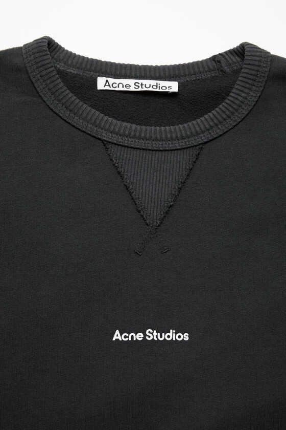 Acne Studios black crew neck sweater features a centre front Acne Studios logo stamp print, crafted from a midweight jersey with a fade-out finish. Complete with ribbed cuffs and cut to a relaxed fit