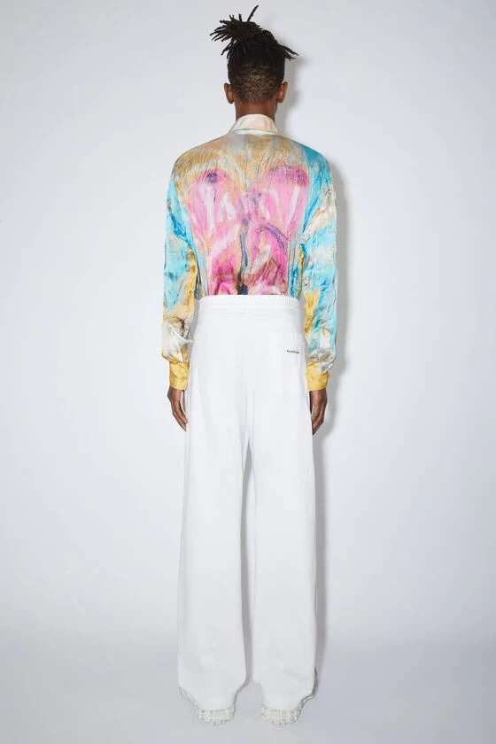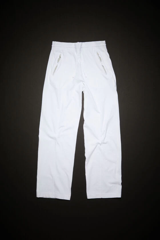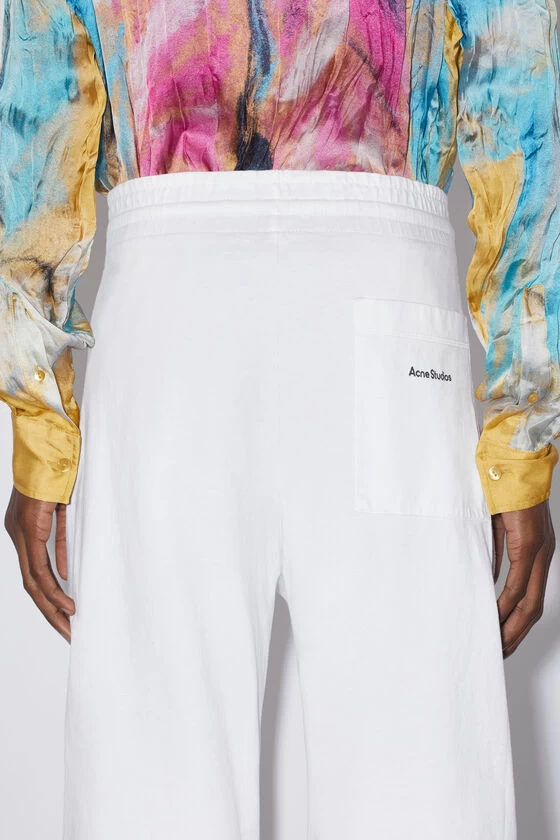 Acne Studios optic white sweatpants are crafted from midweight jersey cotton, detailed with an Acne Studios logo stamp on the back pocket. Complete with an elasticated waist, zippered front pockets and a back patch pocket. Cut to a relaxed fit and long length.