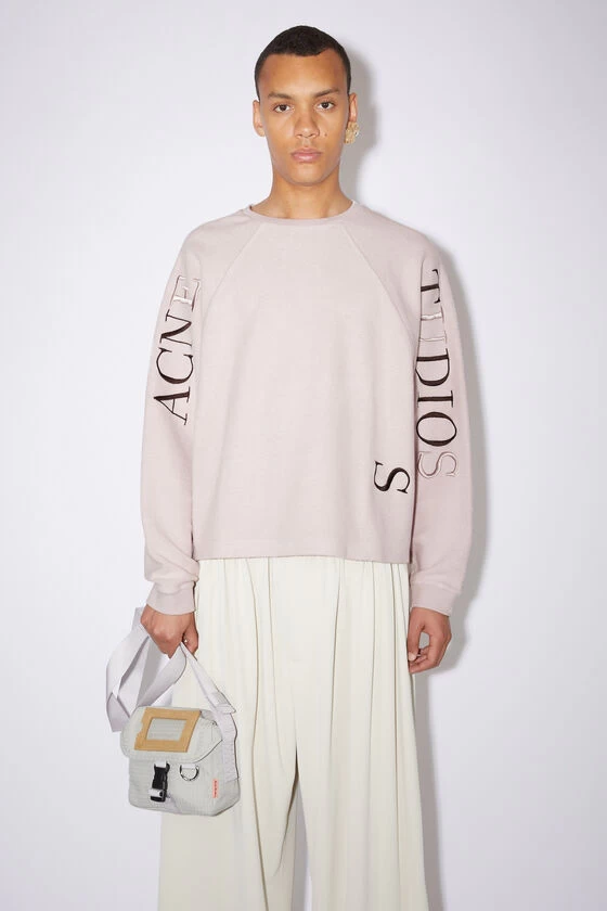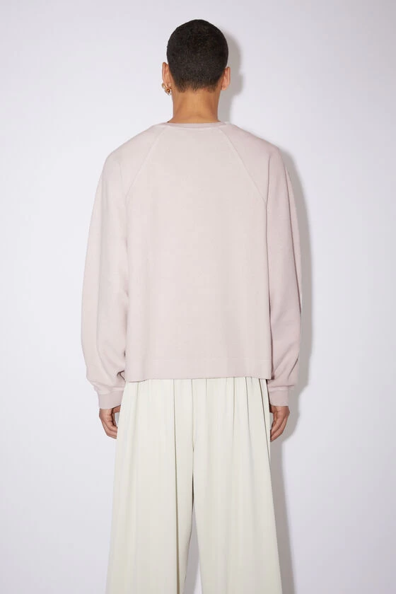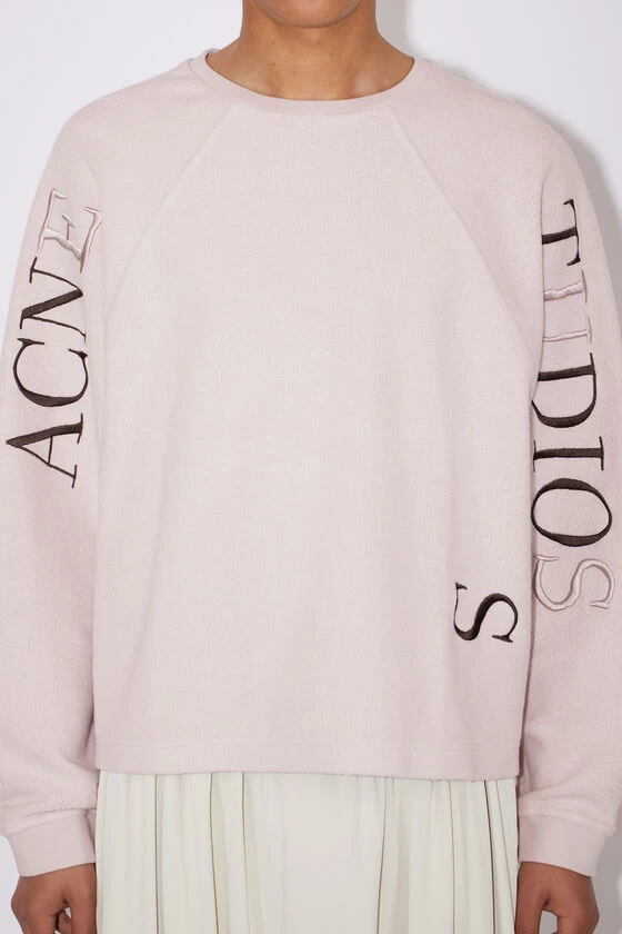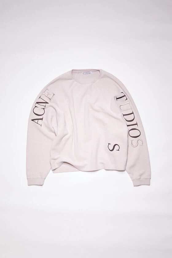 Acne Studios pale lilac sweatshirt features an embroidered Acne Studios logo with wavy typography, crafted from brushed fleece cotton. Cut to a relaxed fit and a regular length.