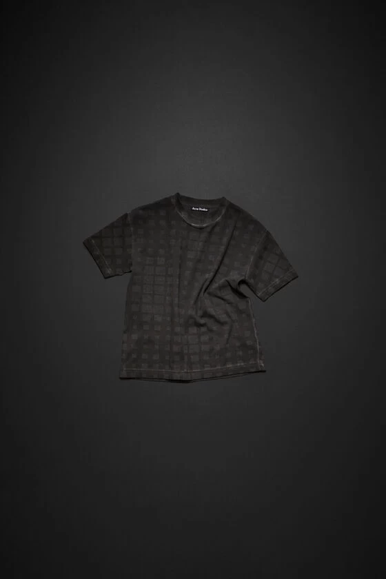 Acne Studios black t-shirt features an all-over laser engraved face logo animation and is detailed with a ribbed neckline. Crafted from lightweight jersey made of cotton.