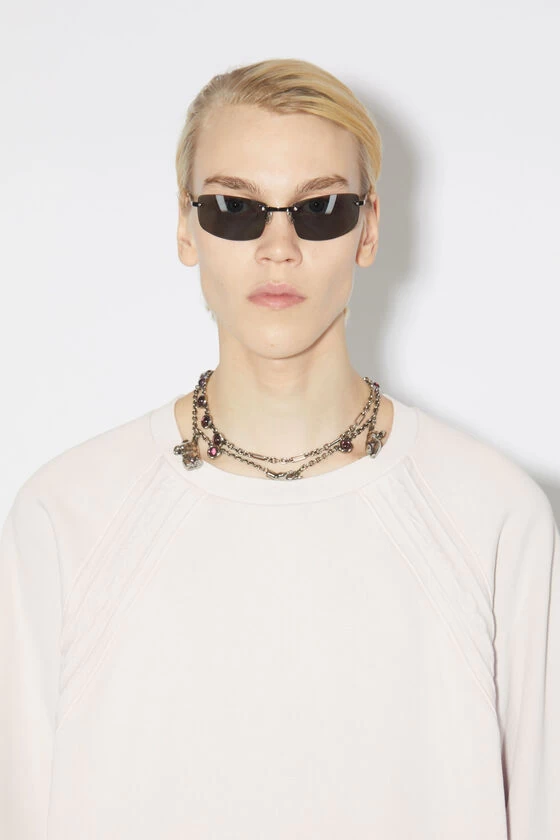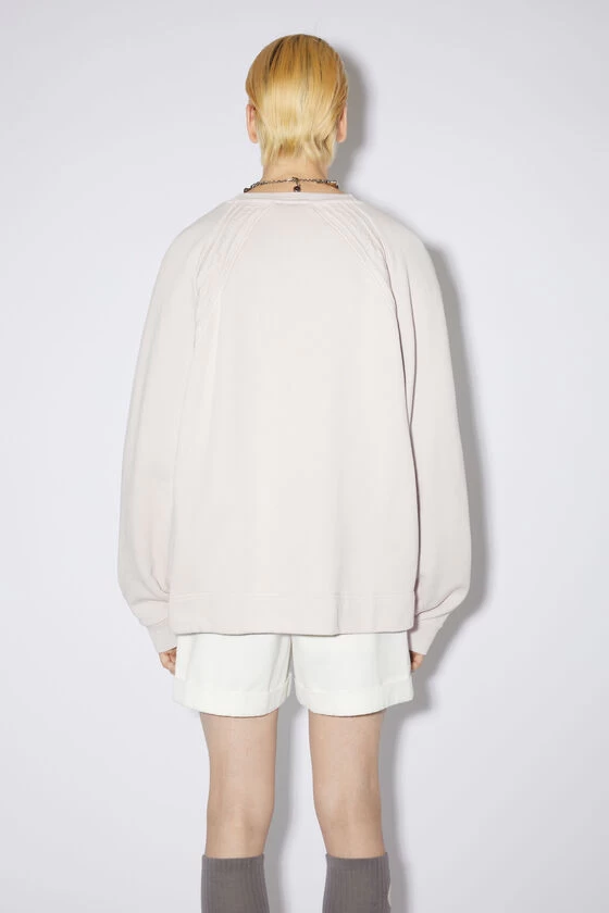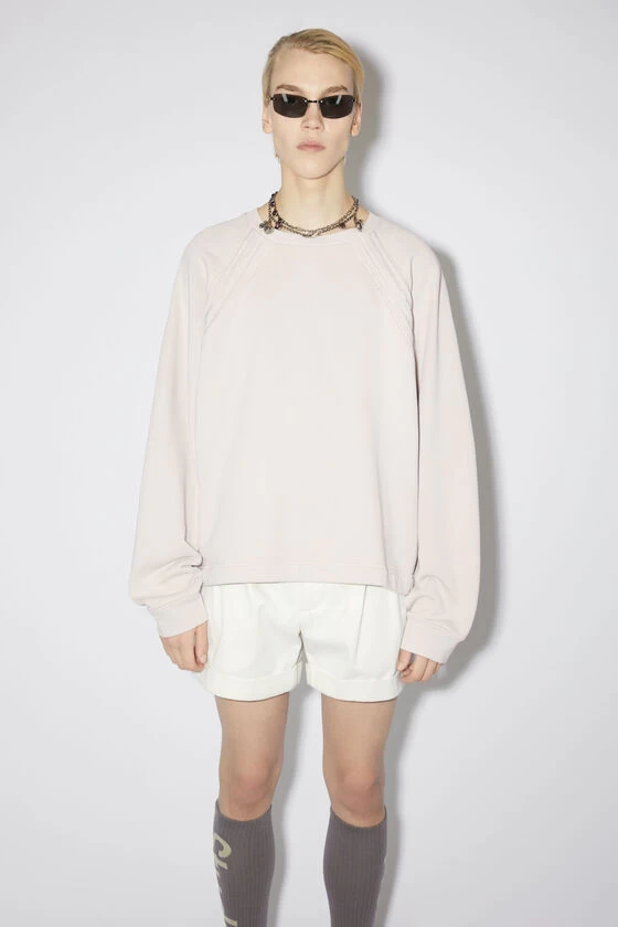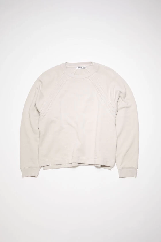 Acne Studios cold white crew neck sweatshirt features Acne Studios logo tape inserts and is crafted from midweight cotton. Detailed with a ribbed neckline and cuffs. Complete with raglan sleeves, side vents and longer back. Cut to a relaxed fit.