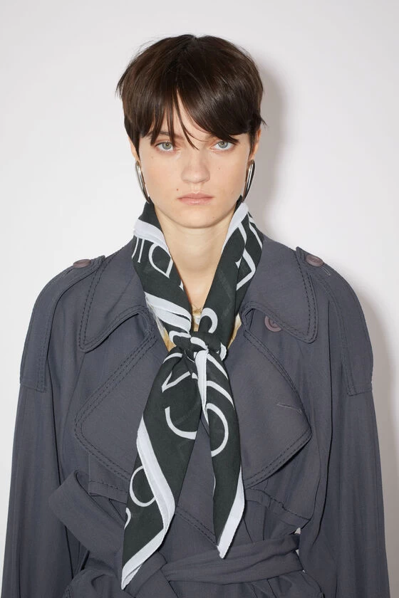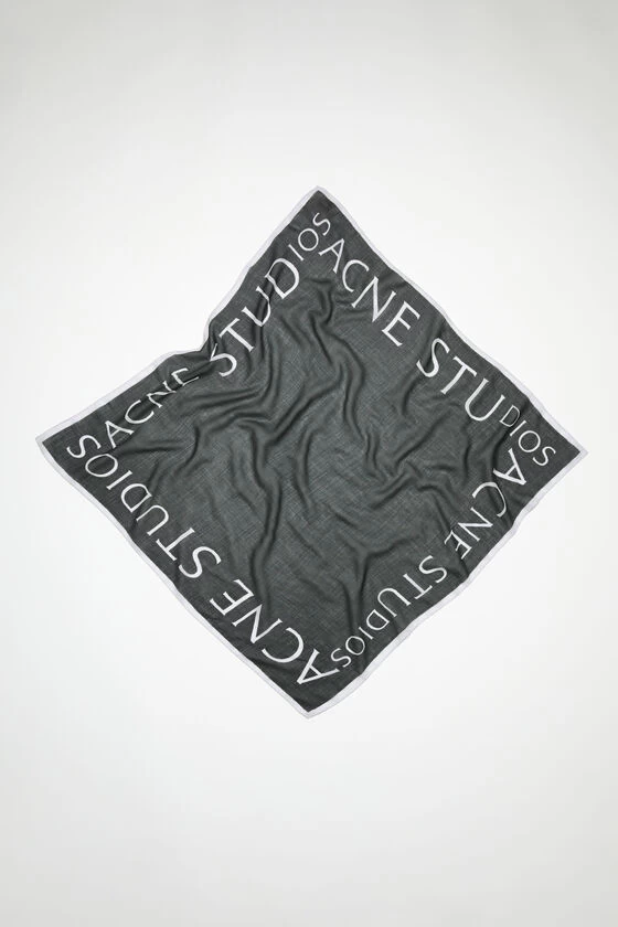 Acne Studios carbon grey square scarf is crafted from lightweight wool and detailed with an Acne Studios logo print.