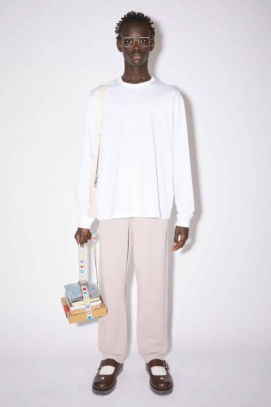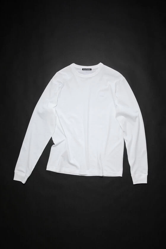 Acne Studios optic white long sleeve crew neck t-shirt is crafted from cotton, detailed with a face logo patch on the chest. Cut to regular unisex fit.