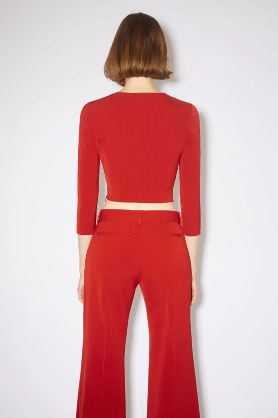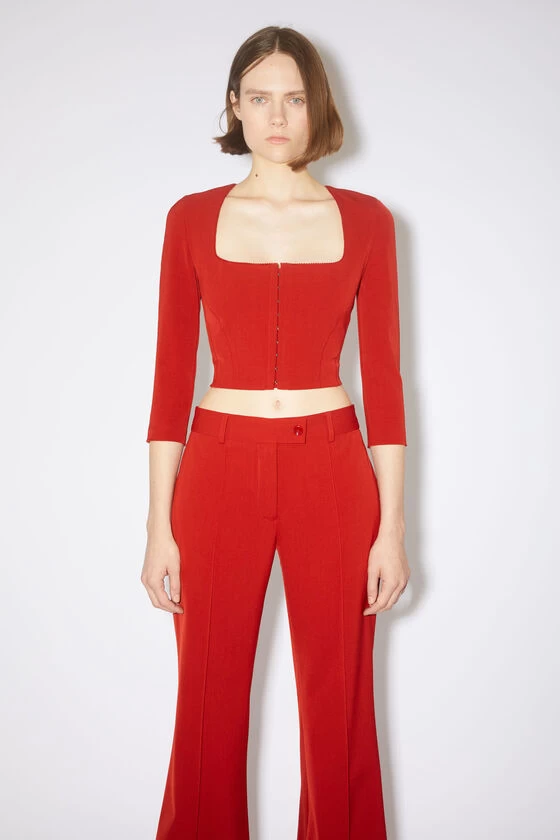 Acne Studios red long sleeve top features a front hook and eye closure, a square-cut neckline and a zipper closure. Cut to a regular fit with a cropped length.