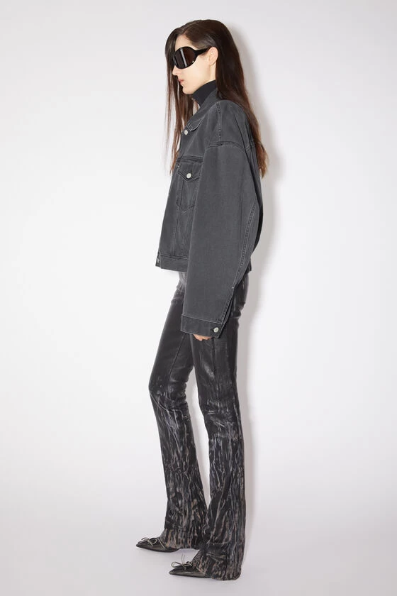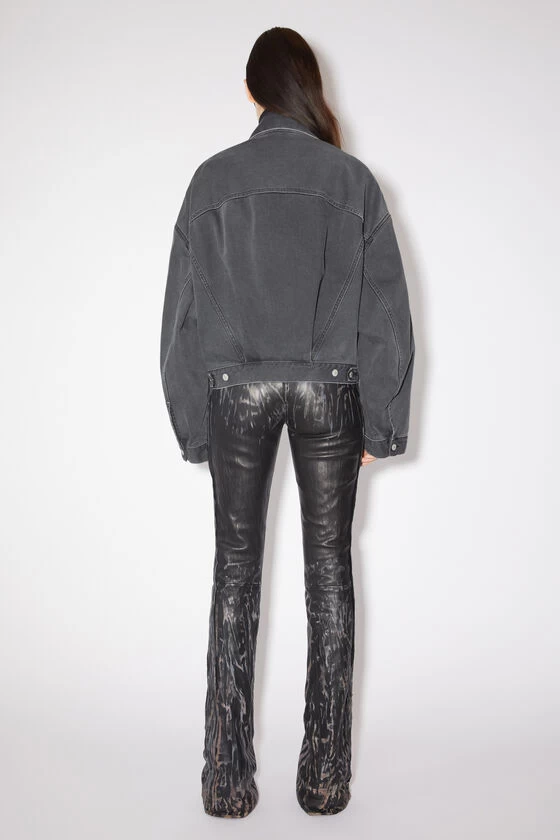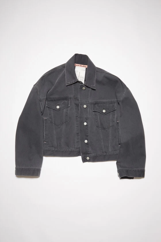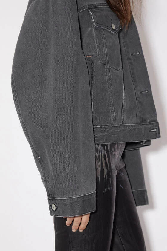 Acne Studios dark grey denim jacket features a loose fit with elongated sleeves and hem length. Crafted from rigid denim made of cotton.