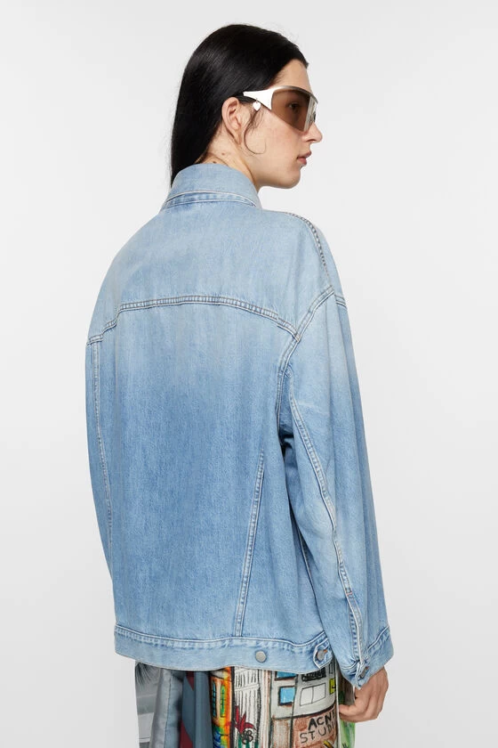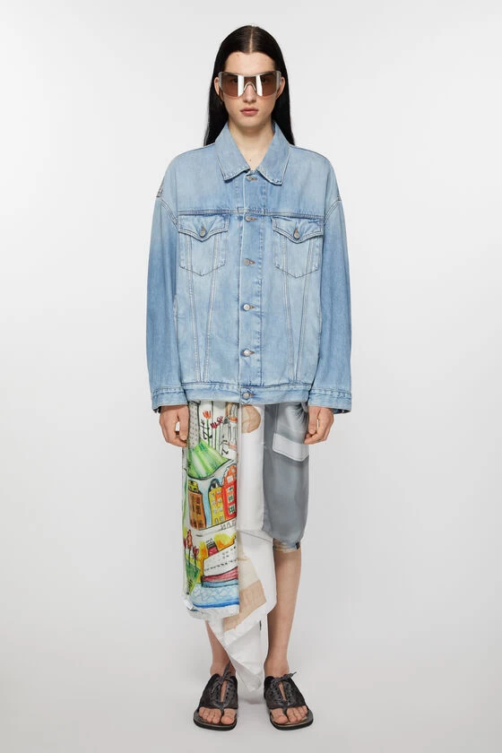 Acne Studios light blue denim jacket features a loose fit with elongated sleeves and hem length. Crafted from rigid denim made of cotton.