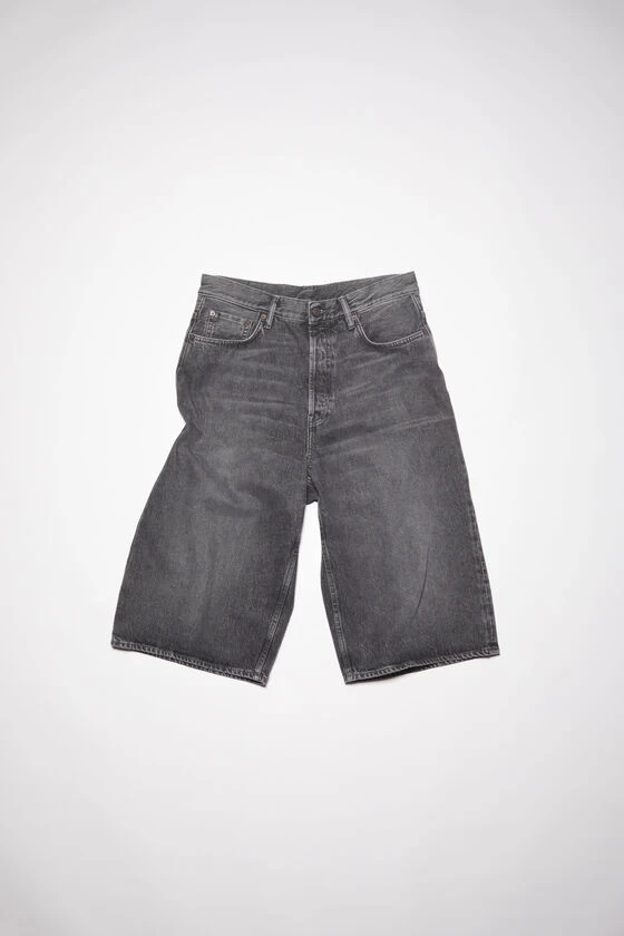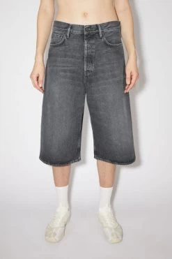 Acne Studios black shorts are cut to a loose fit, mid rise and below the knee length. These unisex shorts are crafted from rigid denim made of cotton.