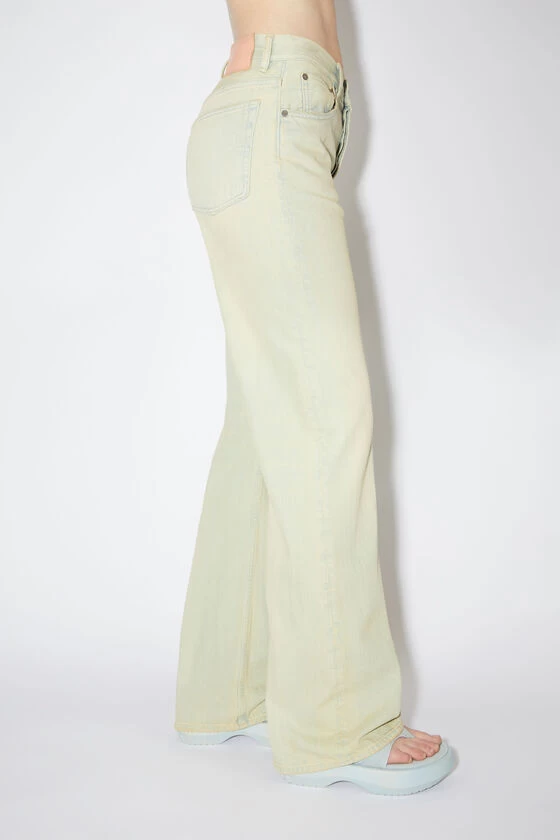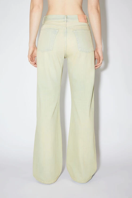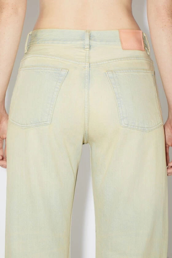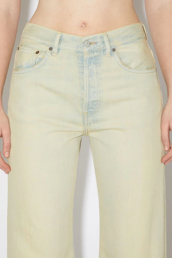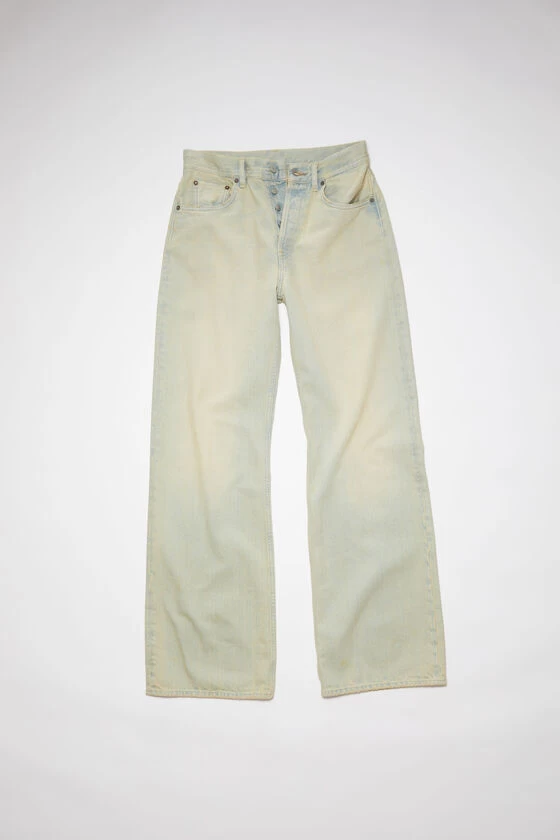 Acne Studios pale yellow/pale blue loose fit jeans feature a 5-pocket denim construction with a mid-waist, wide leg and long length. The 2021 jeans are crafted from rigid denim made of cotton.
