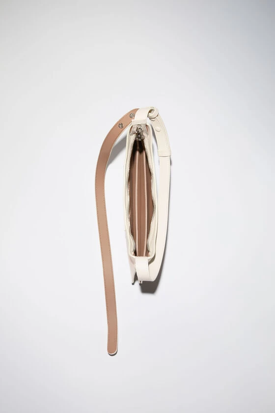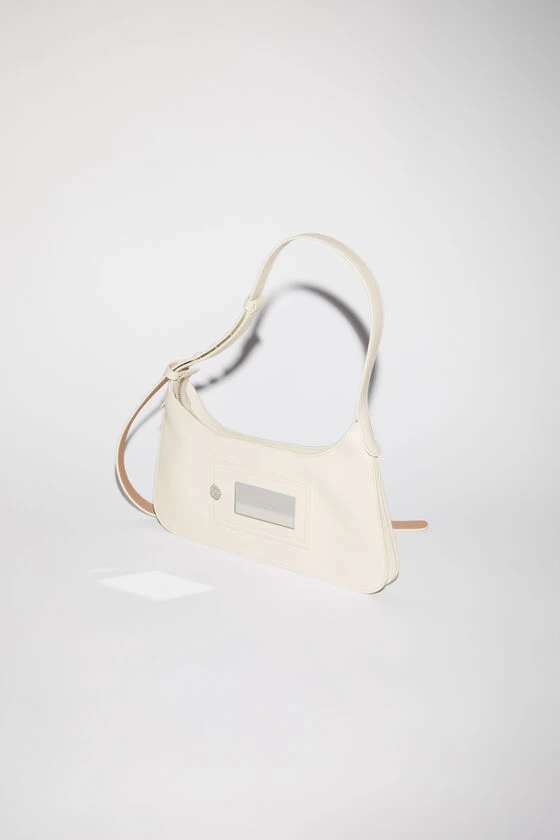 Acne Studios white shoulder bag is crafted from soft leather with a smooth finish and tonal Acne Studios logo patch. The platt shoulder bag presents a minimalistic silhouette with sculptural folds at the base and sides. Complete with a decorative removable mirror and discrete closure.