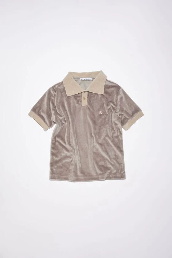 Acne Studios light brown polo shirt features a seasonal logo embroidery on the chest. Complete with a contrast button-up front closure chenille yarn placket, and cut to a regular fit.