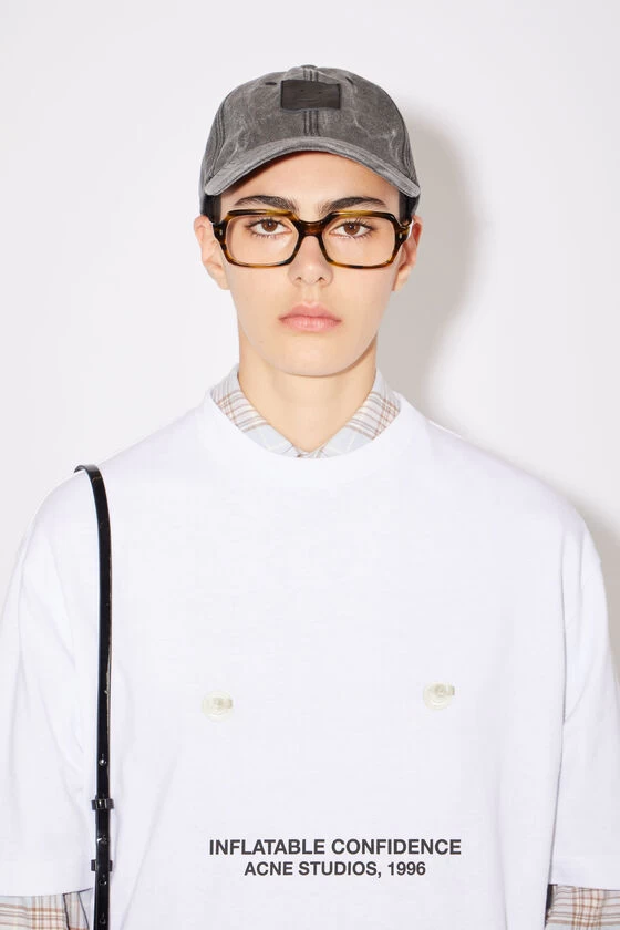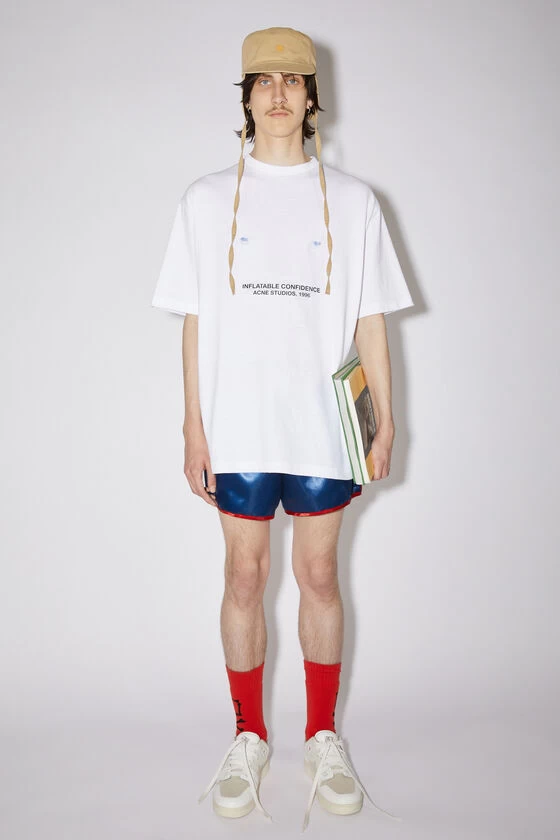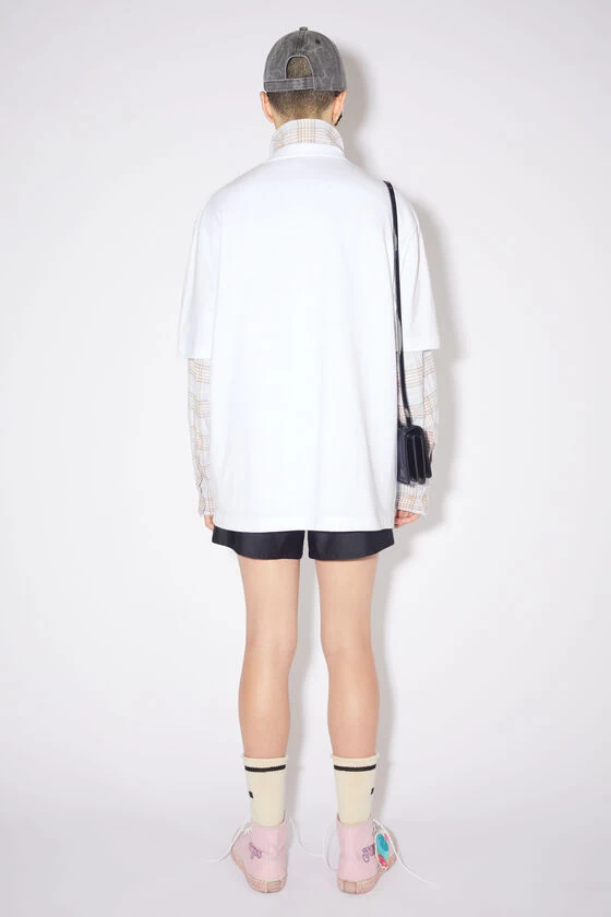 Acne Studios optic white t-shirt features a screen print and nozzle detailings. Crafted from lightweight jersey made of cotton. Cut to a loose fit with a regular length.