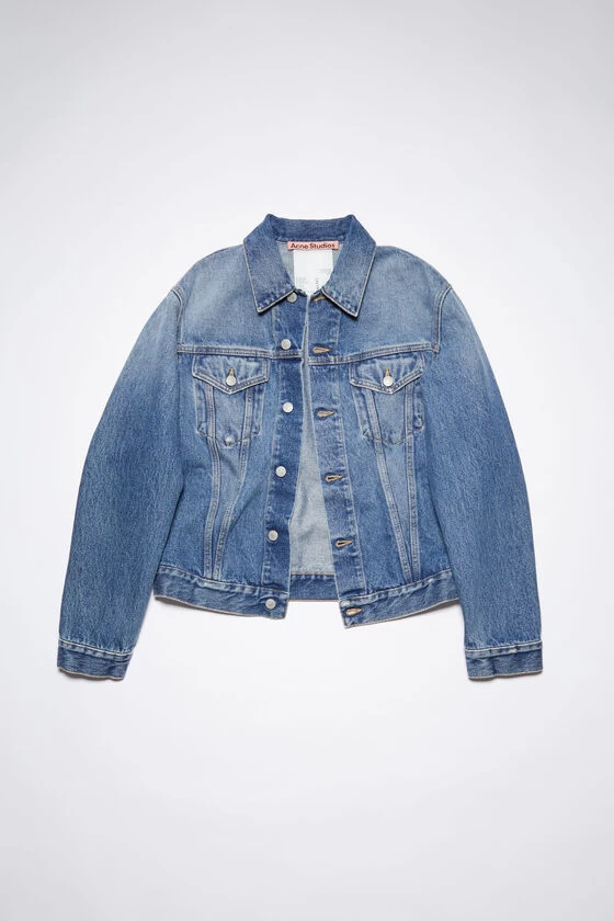 Acne Studios mid blue denim features a regular fit with elongated sleeves and a slightly tapered hem. Crafted from rigid denim made of organically grown cotton.
