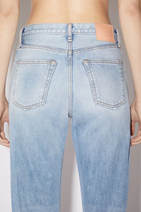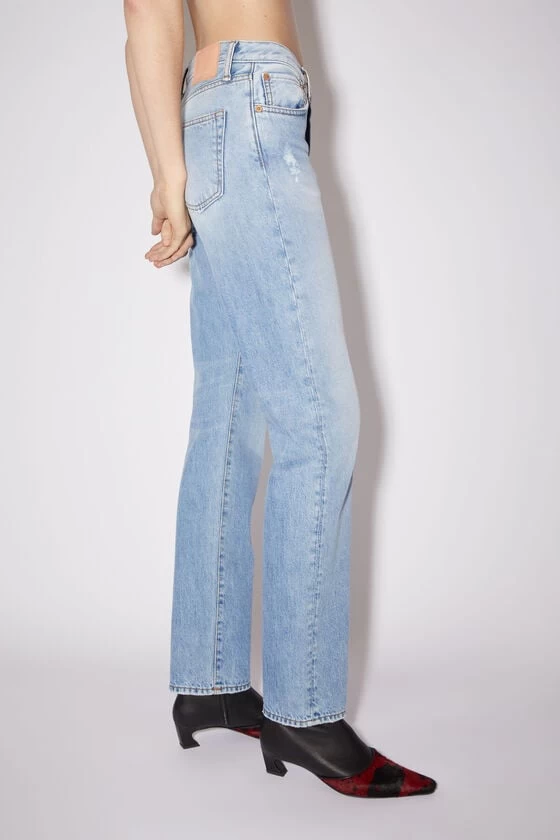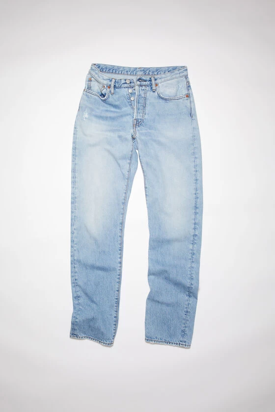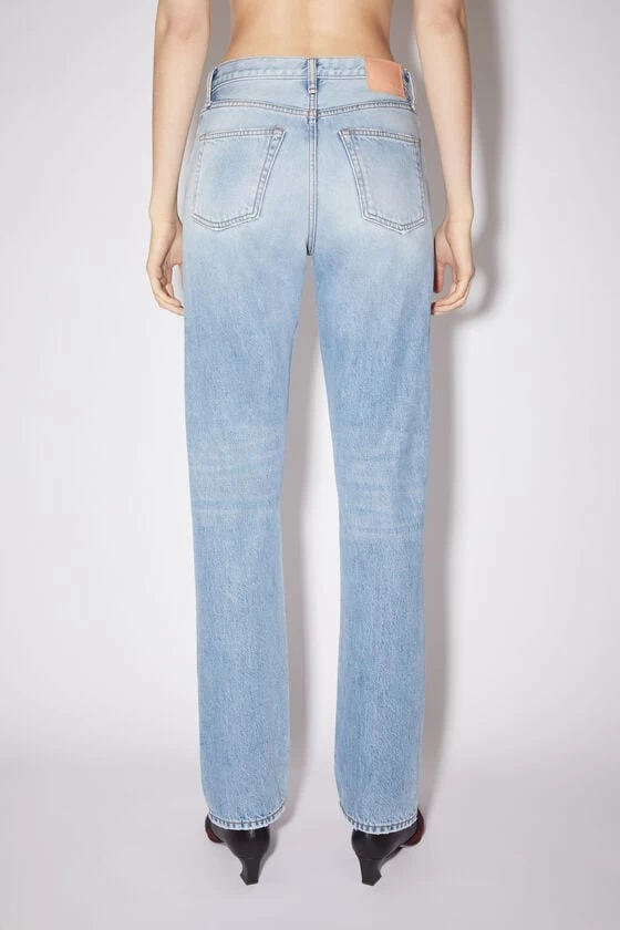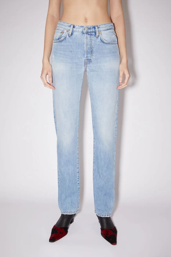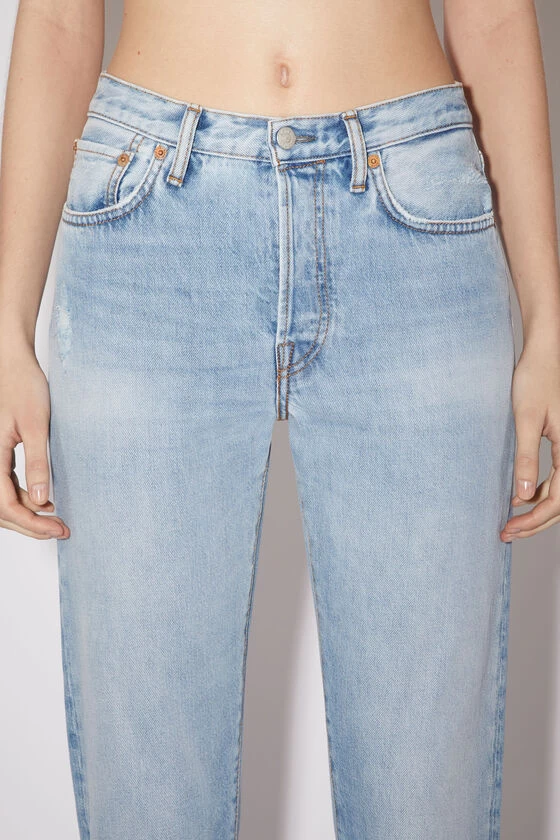 Acne Studios light blue regular fit jeans feature a 5-pocket denim construction with a high waist, tapered leg and regular length. The 1997 jeans are crafted from rigid denim made of cotton.