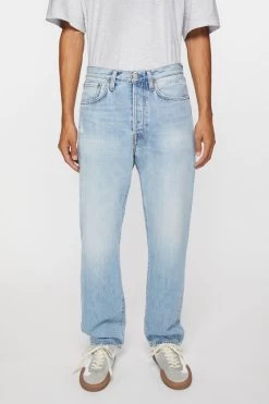 Acne Studios light blue jeans feature a 5-pocket construction cut to a relaxed fit with a low waist, straight leg and a regular length. The 2003 jeans are crafted from rigid denim made of cotton.