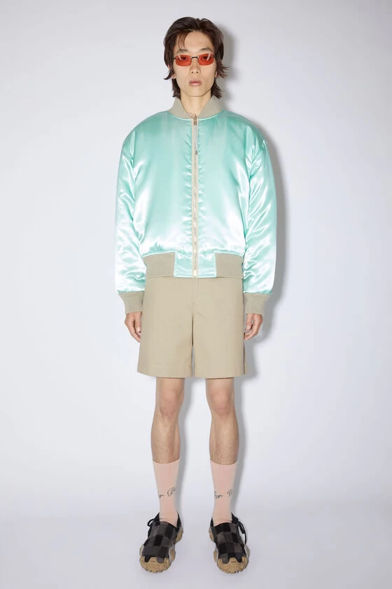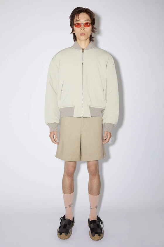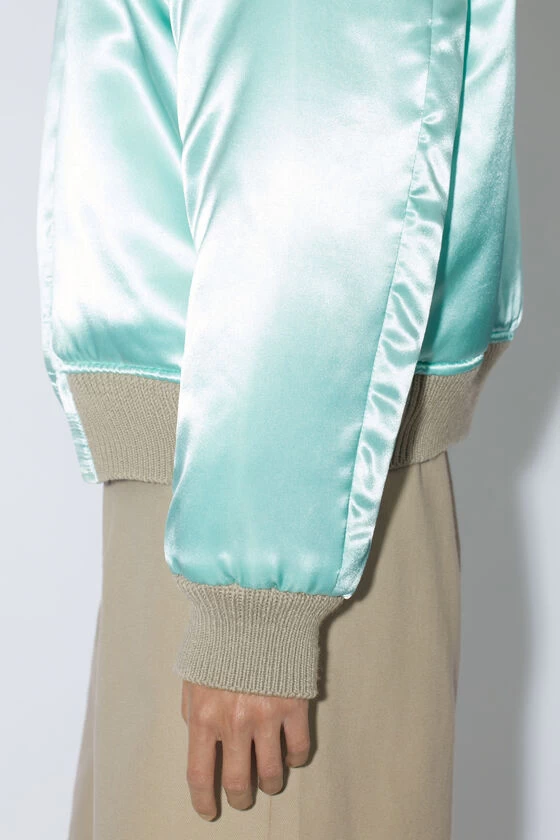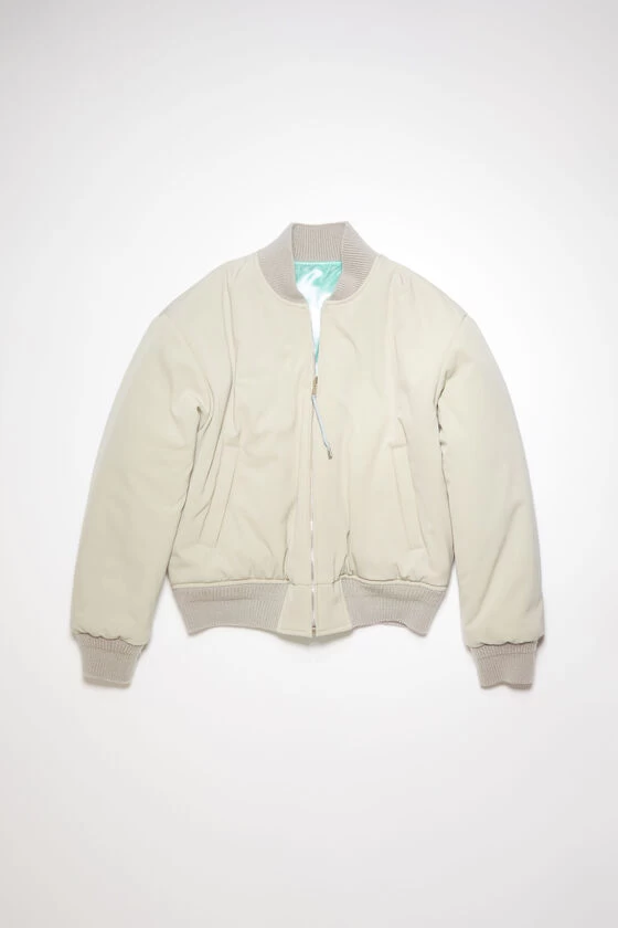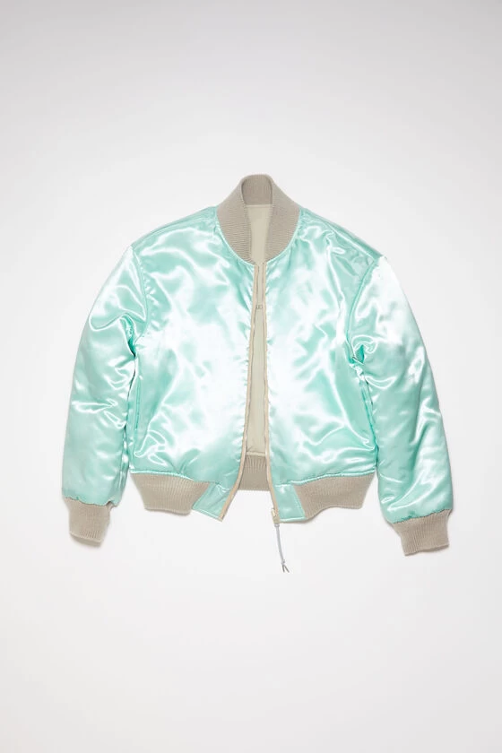 Acne Studios cold grey reversible bomber jacket is crafted from a wool blend and features a satin reverse side. Complete with ribbed neckline, cuffs and hem details. Adorned with an Acne Studios logo embroidery and cut to a regular fit.