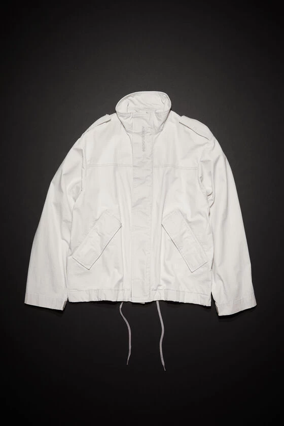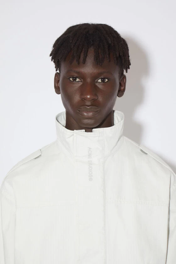Acne Studios fog grey jacket is crafted from ripstop cotton with a stone-washed finish, detailed with an Acne Studios logo embroidery on the front and cut to a regular fit.