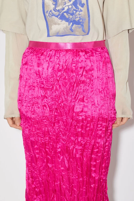 Acne Studios fuchsia pink midi skirt is crafted from silk blend satin fabric with a luminous and fluid appearance. Complete with a discrete zippered closure and elasticated trim at the waist. Cut to a regular fit and mid length.