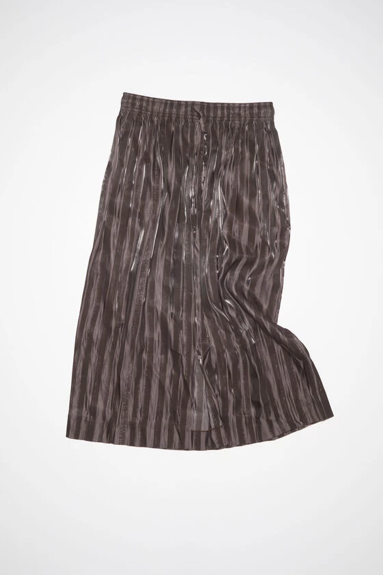 Acne Studios chestnut brown skirt features an all-over stripe print crafted from satin fabric, constructed entirely from excess fabrics and materials. Complete with an elasticated waist and cut to a regular fit.